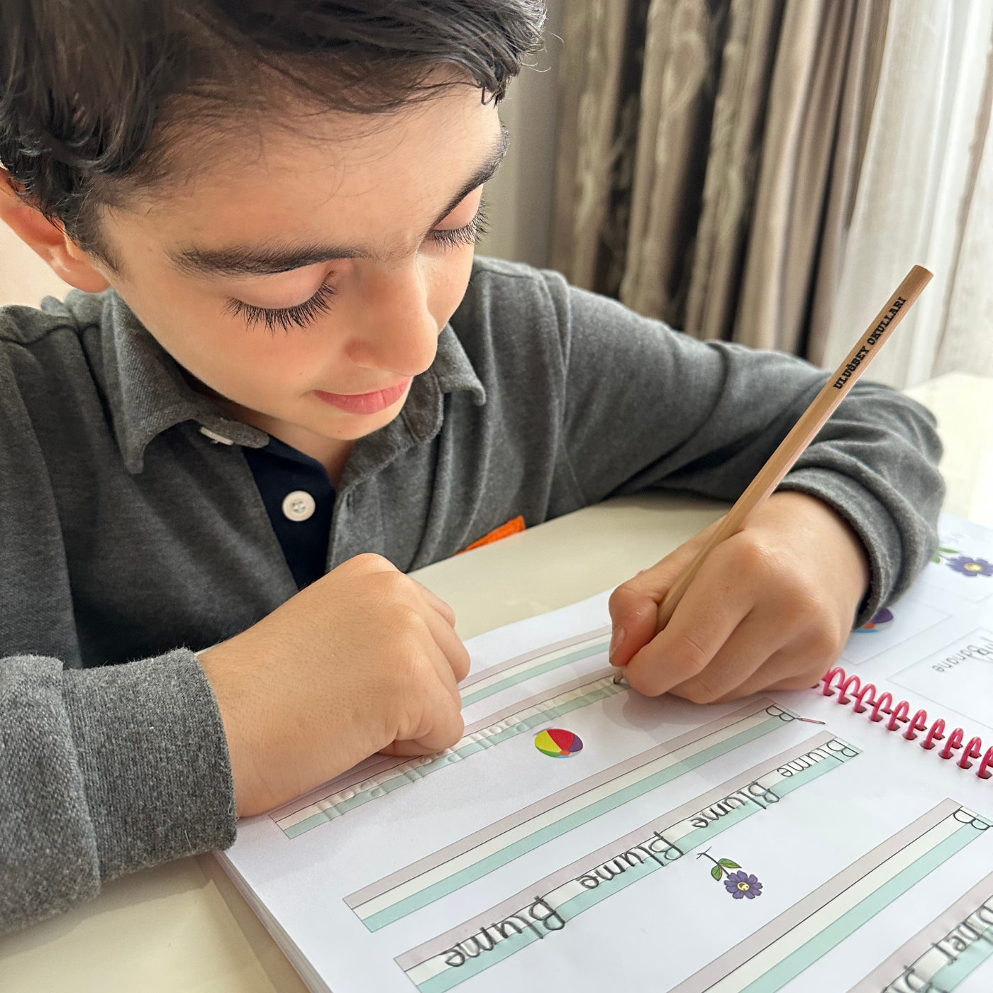 Speziell entwickeltes Schreibheft für Linkshänder mit geprägten Linien zur Förderung der Feinmotorik und des Schreiblernens.
